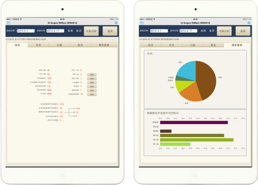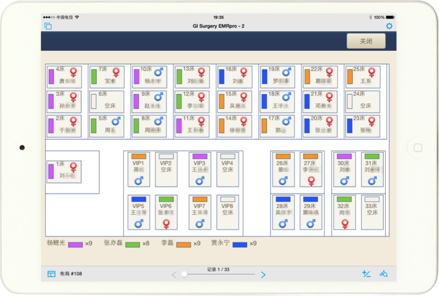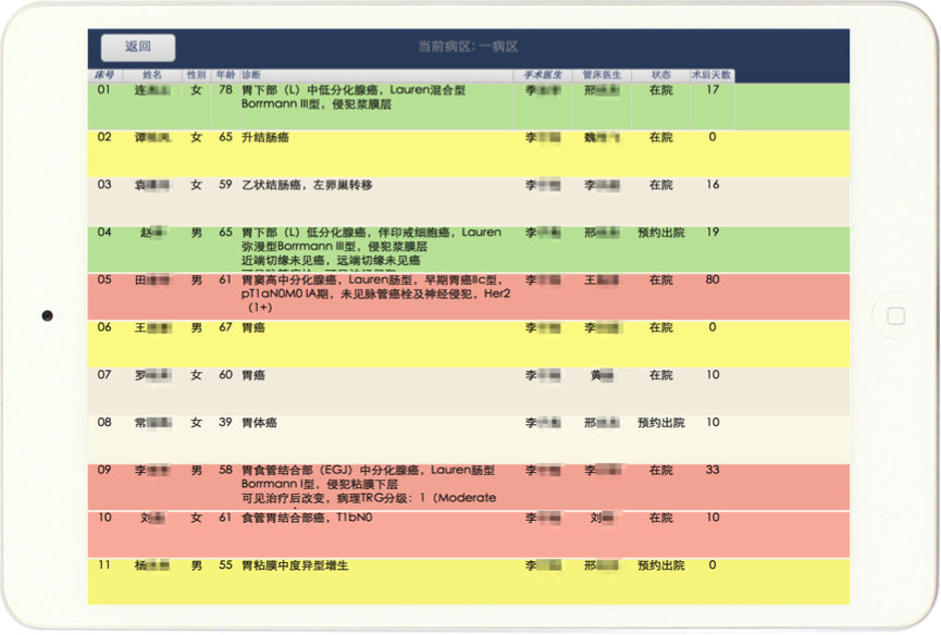 通过iPad端可以在院内随时随地关注住院患者及病房床位情况,帮助病房负责医师和住院总医师了解每一位住院患者即时情况,安排住院医师管理,预定出院日期,根据床位安排预入院患者。
